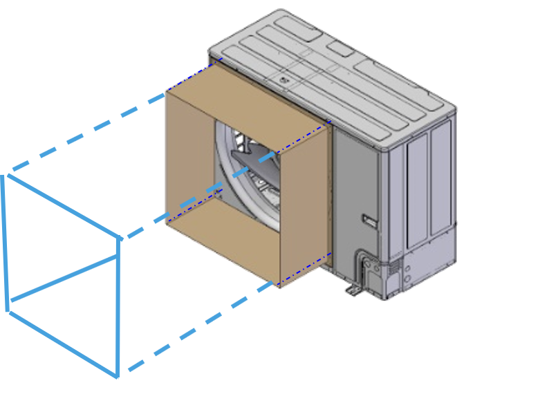 •  ولإخفاء الوحدات الخارجية خلف جدار البلكونة أو الجدار الخارجي لسطح البناء، ينبغي ألا يزيد ارتفاع الوحدة الخارجية عن متر واحد أو أقل.